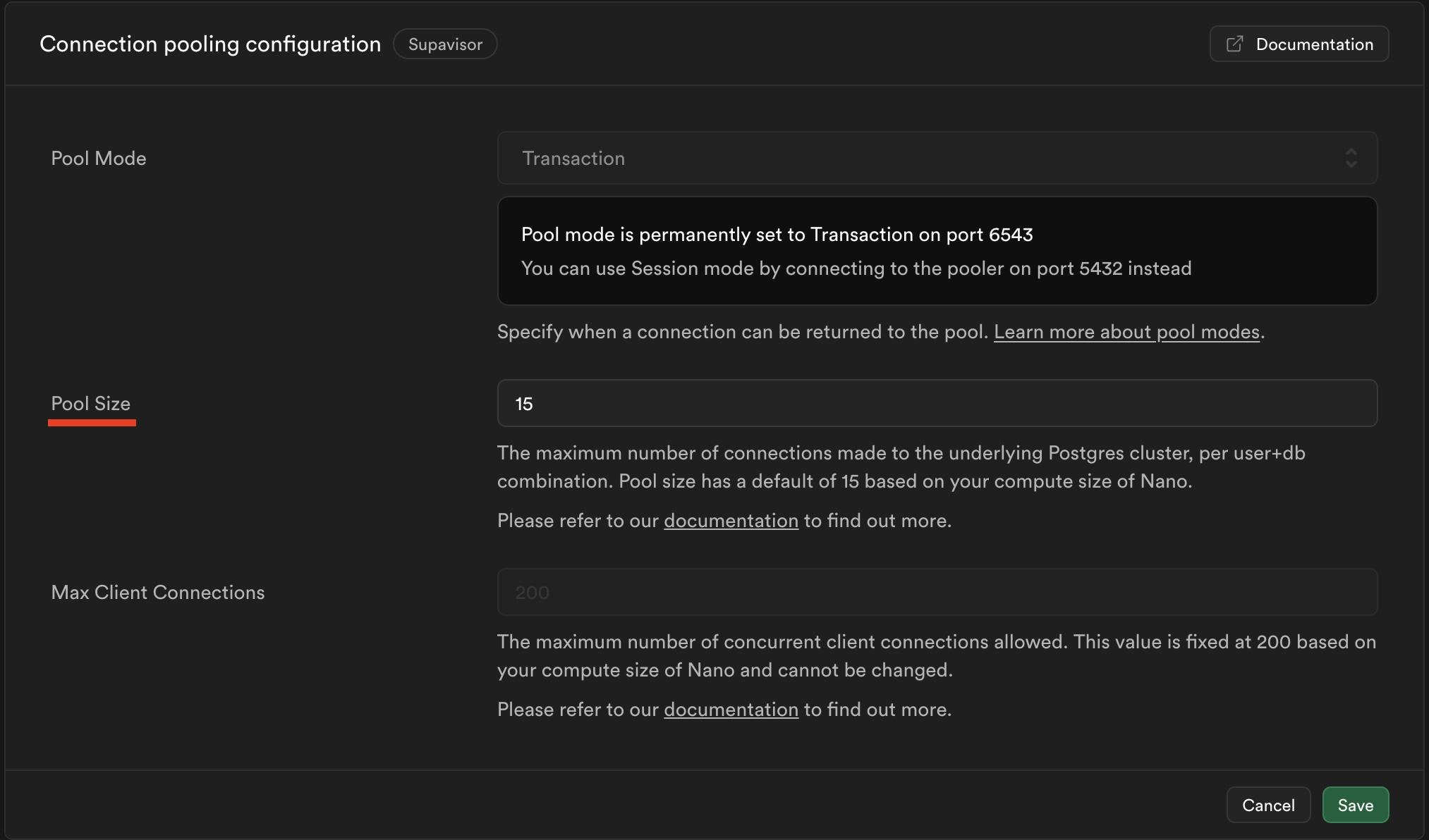 Configuring Supavisor's pool size